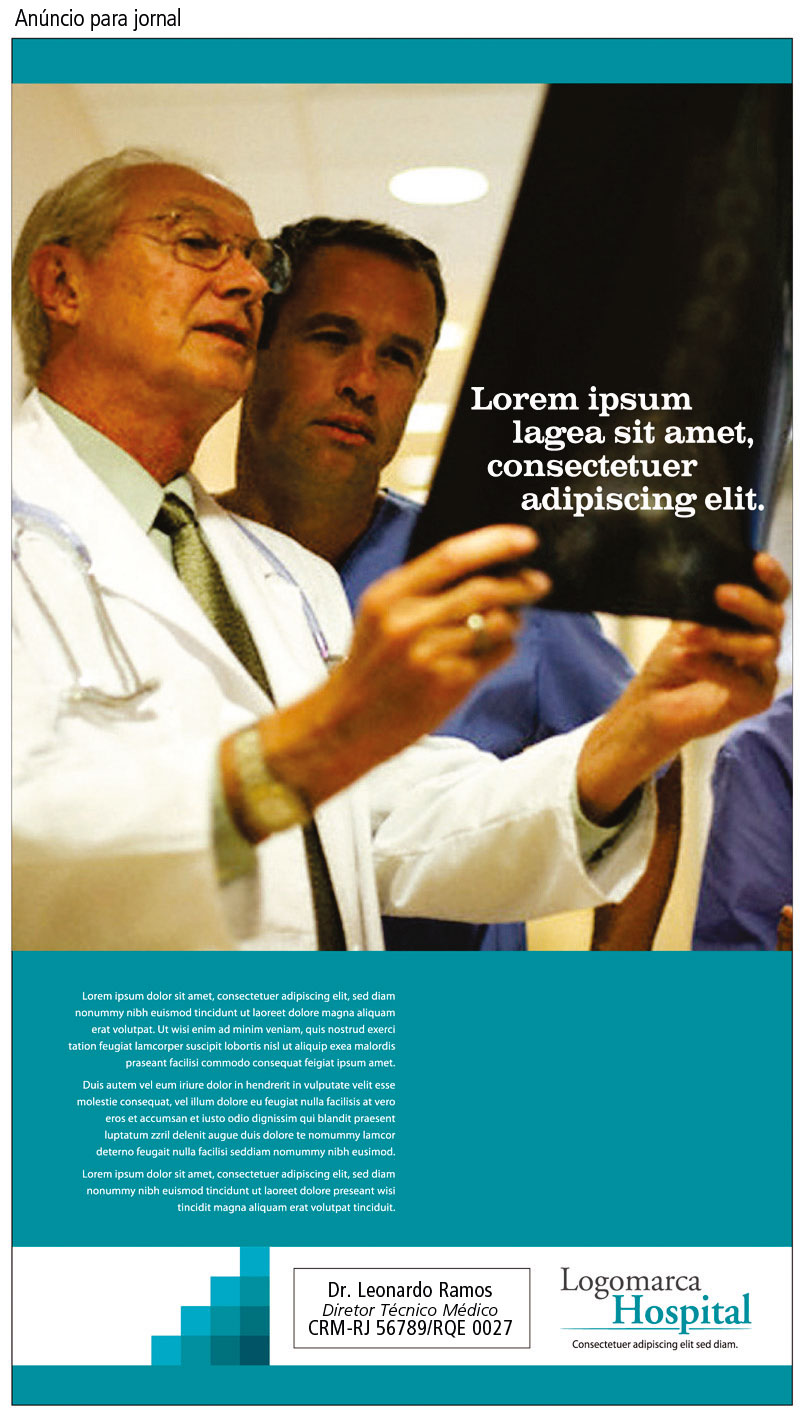 | Os layouts apresentados neste anexo são meramente ilustrativos. Eles retratam apenas sugestões do emprego das regras de publicidade médica explicitas na resolução CFM 1.974/10. A criatividade é estimulada, desde que os critérios estabelecidos sejam observados. |
