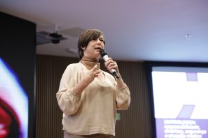Ao falar da sua trajetória, Maria Paula contou como se engajou na campanha que deu origem à lei dos seis meses de licença maternidade para as servidoras públicas e pela criação de salas de amamentação nas penitenciárias.