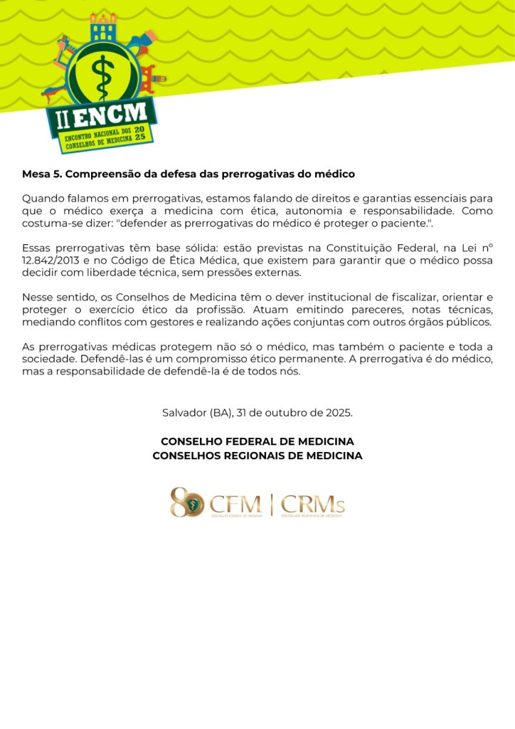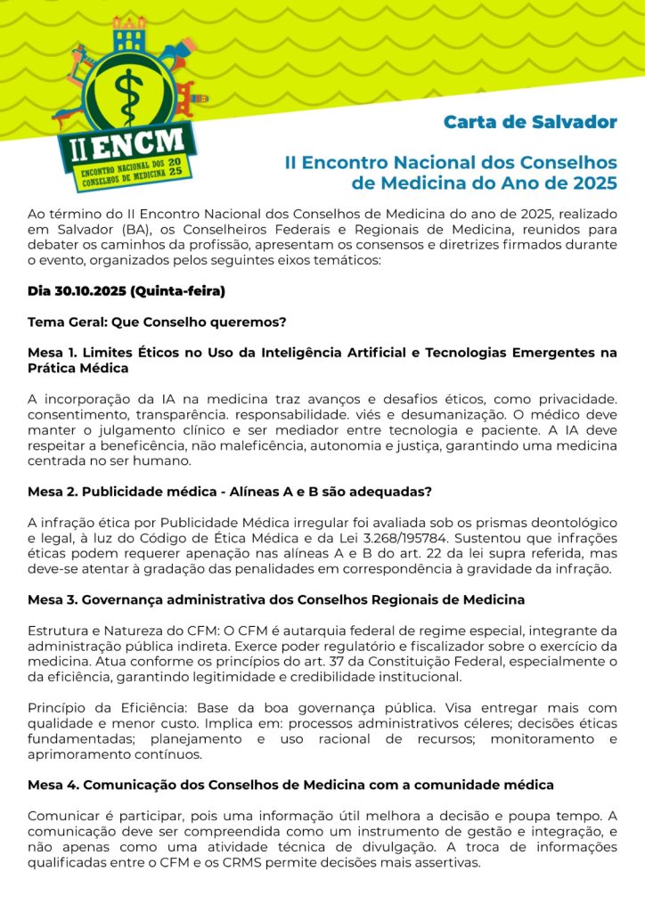 Carta de Salvador: II Encontro Nacional dos Conselhos de Medicina do Ano de 2025