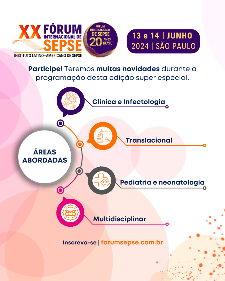 O Instituto Latino-americano de Sepse (Ilas) traz para São Paulo, durante o evento, programação com palestrantes de renome mundial para discutir atualizações e pesquisas na área. O evento terá sua vigésima edição nos dias 13 e 14 de junho. As inscrições podem ser feitas aqui: https://forumsepse.com.br/