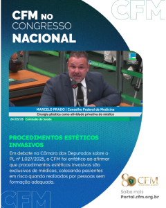 O conselheiro também destacou as diferenças na formação entre médicos e outros profissionais da saúde, ressaltando que a formação médica inclui maior carga horária e preparo para lidar com complicações clínicas e cirúrgicas. Para o CFM, permitir a realização de cirurgias estéticas por profissionais sem essa formação representa risco direto à saúde da população. “O Brasil assiste, estarrecido, à multiplicação de complicações graves, sequelas e mortes evitáveis resultantes de procedimentos realizados por pessoas sem o necessário preparo para lidar com a complexidade dos procedimentos que se propõe a executar”, enfatizou Prado.
