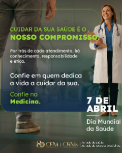 No dia Mundial da Saúde, o Conselho Federal de Medicina (CFM) lança uma campanha que incentiva o autocuidado. “Um passo a cada dia, um gesto de cuidado, um toque que protege, um atendimento que salva vidas. Pequenas atitudes mudam desfechos, cuidar da saúde muda tudo”, preceitua um post do CFM nas redes sociais da autarquia.