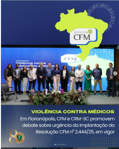 Com o objetivo de debater com gestores e profissionais de saúde propostas para tornar os estabelecimentos de saúde mais seguros, o Conselho Federal de Medicina (CFM) foi à Santa Catarina para discutir a implementação da Resolução CFM nº 2.444/25, que estabelece medidas para garantir mais segurança no exercício da Medicina. A ação integra o projeto Divulga CFM, que circula nos estados brasileiros para discutir a implementação da norma.