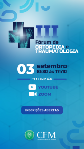 “Futuro do Ensino e Atendimento Ortopédico no Brasil” será debatido no dia 3 de setembro no III Fórum de Ortopedia do Conselho Federal de Medicina (CFM), que será realizado de forma on-line. A transmissão será pelo YouTube e pelo Zoom. O evento vai reunir professores, representantes do Ministério da Saúde, dos planos de saúde e da Sociedade Brasileira de Ortopedia e Traumatologia (SBOT) para debater os desafios atuais da ortopedia.