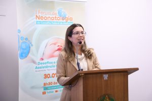 Cuidados Paliativos em Neonatologia – Dando continuidade às discussões, o fórum contou com mesa redonda sobre o tema. A primeira das conferências discutiu o tema Comunicação de Más Notícias e Suporte Parental, apresentada pela médica pediatra e neonatologista Alessandra Costa de Azevedo Maia. Conforme analisou a palestrante, “na neonatologia, a comunicação não é um momento. É um processo clínico”. Aos participantes do encontro, Alessandra destacou: “pais não se lembram de tudo o que foi dito, mas nunca esquecem como se sentiram”.