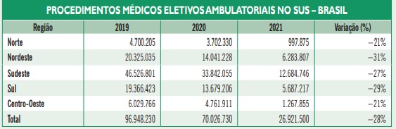 De acordo com o levantamento do CFM, a redução nos procedimentos ambulatoriais – aqueles que não exigem a permanência do paciente na unidade de saúde por